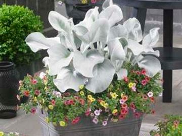 A sensational, rounded plant with large, broad, toothy, silvery white, velvety leaves. Use to create a bold backdrop to green-leaved plants and colorful flowering perennials in sunny, drought tolerant borders, rock gardens, succulent gardens, and containers.