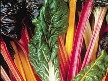 This stunning chard mix has stems in gold, pink and crimson. A few plants will be white and pink striped, orange, scarlet, purple, green and white. All are delicious to eat, though they are at their best harvested young for salads.